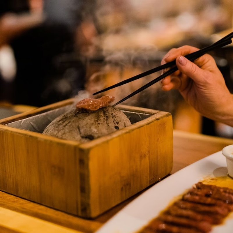 Our favorite dish: Hot rock Wagyu (cook it yourself on a sizzling stone!) and the Firecracker Shrimp.